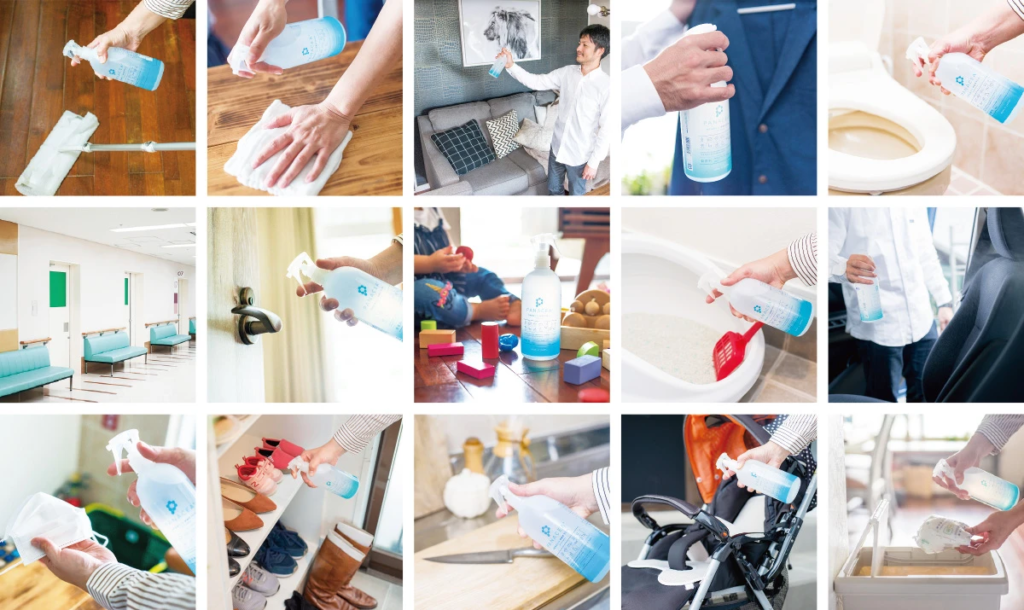 リビング・寝室・玄関、衣類やソファーなどのファブリックからペットのトイレまで、生活空間に幅広い用途で消臭効果を発揮します。キッチンやバス・トイレなどの水回りにもご使用いただけます。